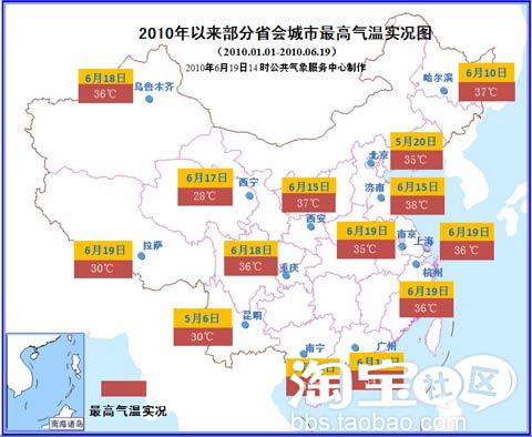 昨天,我国近一半省份出现高温天气。南京(35℃)、上海(36℃)、杭州(36℃)、南宁(36℃)、广州(34℃)、拉萨(30℃)六个省会城市的气温创下今年以来新高。