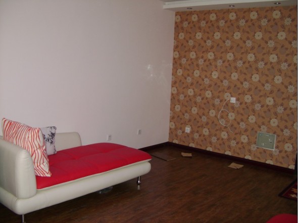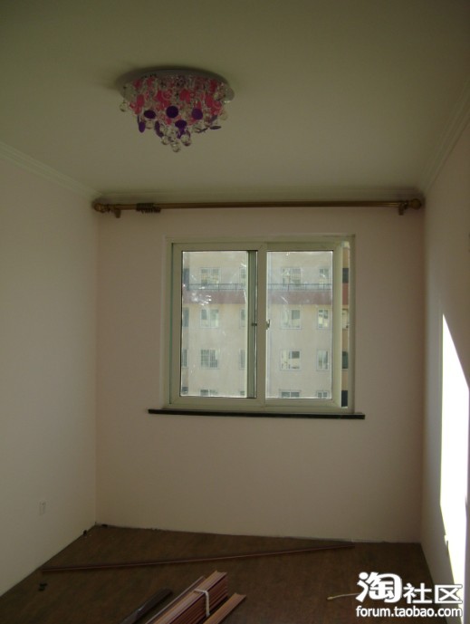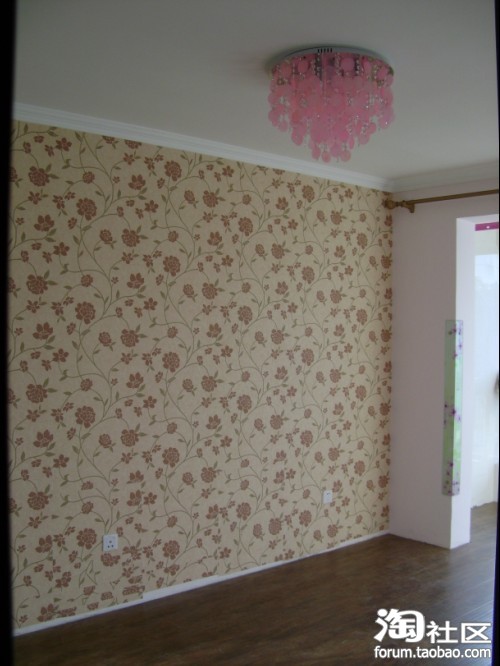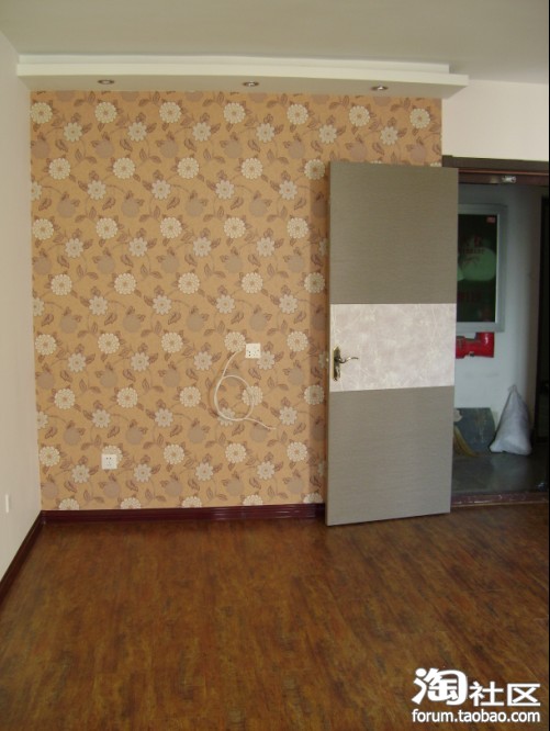 半成品的样子,铺了复合木地板,床头后面的墙贴了壁纸,300一卷,一共两卷,对花贴的,床头遮挡的地方没有对花,不然壁纸不够用,再买就浪费了。