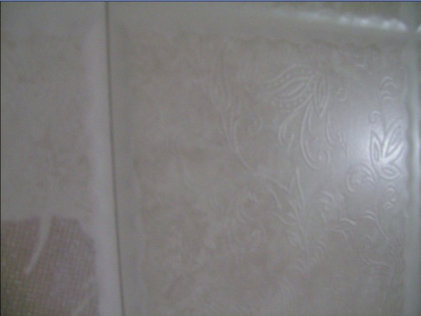 这个是卫生间瓷砖的细节,上面有花纹,地砖也有花纹