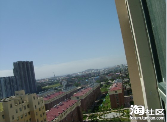 窗户对面看到的灰色楼群就是很著名的在水一方,生态环保的全省样板小区