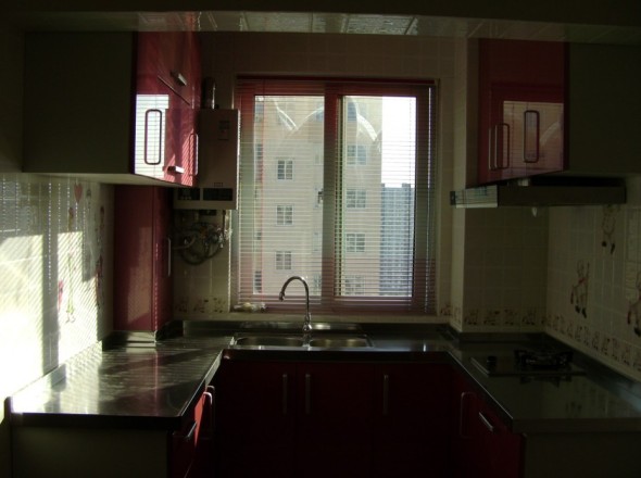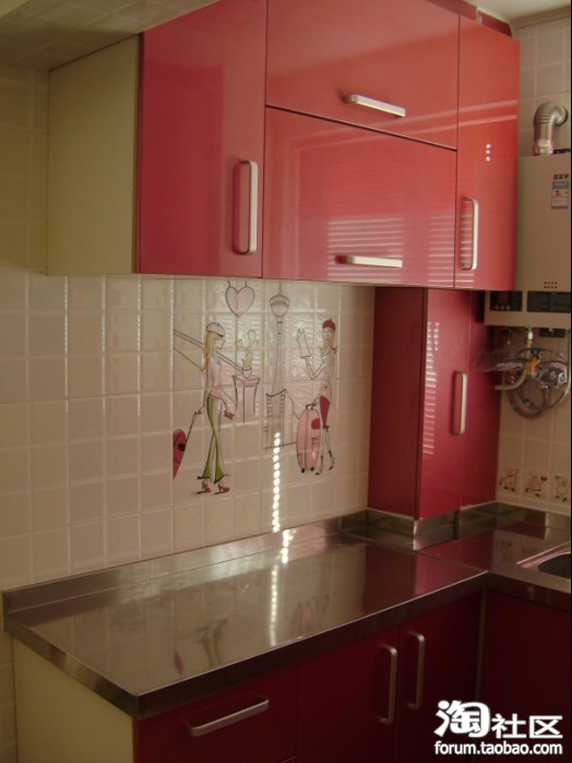 左边的厨房部分。燃气热水器是万家乐的,本来也想在淘宝买,价格确实很诱人,我算过,加上运费也就1200左右,在商场标价是3000以上,一般2800拿货。正好赶上国庆节特价机1780拿货的,主要是为了安全,不然我就淘一个了,其实也想淘一个,却遭到家人及同事的一致反对,为了安全,多花钱吧。万家乐E10型号的,不错。有勇气的朋友可以从淘宝淘一个哈。燃气表看不到了吧,藏到了地下的橱柜里了哈。而且我用信用卡买的热水器,很合算,缓解了流动资金紧张的问题。