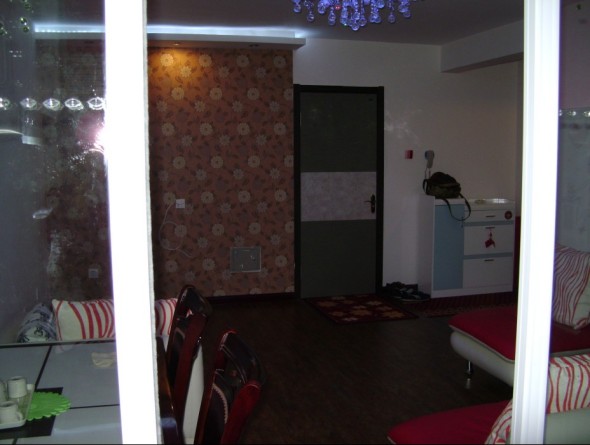 客厅的全貌,从大门外照的,因为家里不大,其实是家俱买大了才显得家里不大。