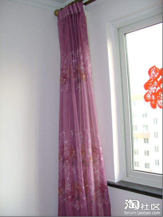 主卧的窗帘,太阳花。老公挑的。窗帘杆的处理大家注意一下,是直接套在窗帘杆上的,当初做的时候,商家给弄坏了,打孔的位置不均等,等我们装上了才发现,后来给我们重新做的。挺郁闷的。