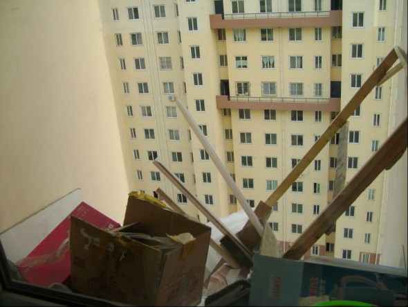 客厅窗户外面的露台,挺让人郁闷的。不大不小的,放空调有点大。1.4平方大。现在堆了一对装修剩下的破烂,楼下有两家给封起来了,我也在考虑。
