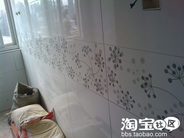 厨房瓷砖,我喜欢的颜色,刚好橱柜定的也是银色的,不过橱柜还没到,后面上图吧