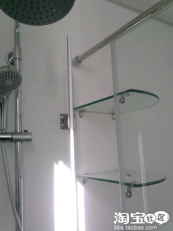 花洒旁的门是淋浴房精品架的