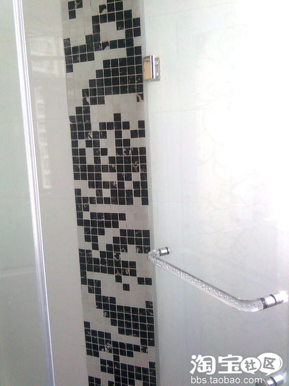 淋浴房和马赛克的位置,左边是卫生间门