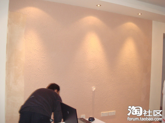 师傅正在做我家的电视背景墙(硅澡泥做的)