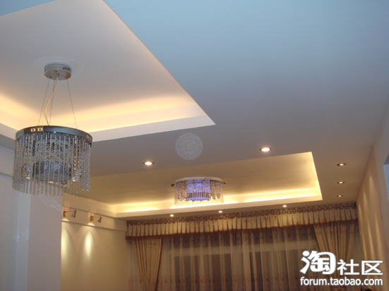 木工是在装修方案定好后,已确定的图纸了,除了家具的施工图重新确定外,其它的都按设计方案的施工图操作的。我家客厅与餐厅的开花工程量大,所以做了将近半个月才完工的。主要都是用装修公司常用的材料做的天花。传张现场的图片给大家看下吧。