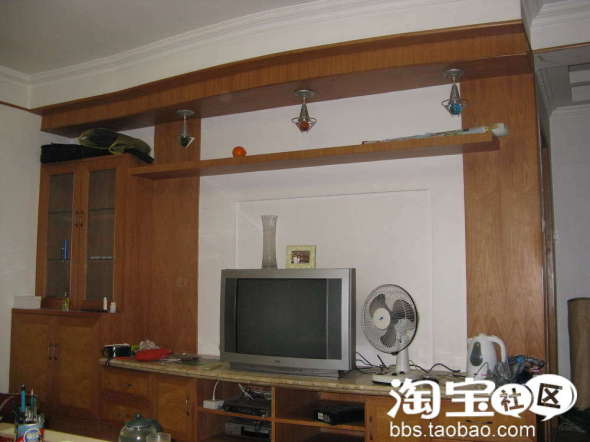 电视背景墙,不知道当时他们装修时留着那块横板是干嘛用的,想拆掉又怕影响左边的那个壁橱。。