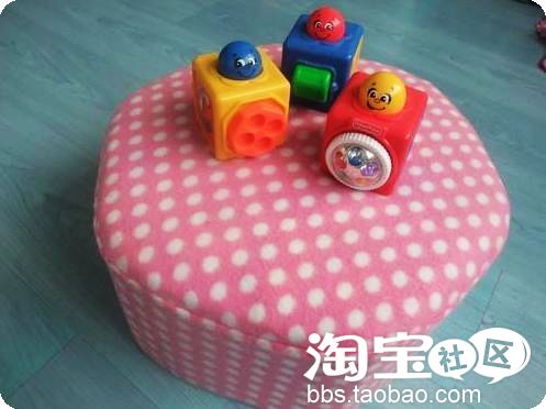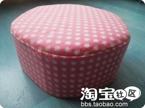 将凳盖顶部和凳围缝合,底部只要塞进奶粉罐和纸盒板中间就可以夹住。多用儿童凳就完成了。