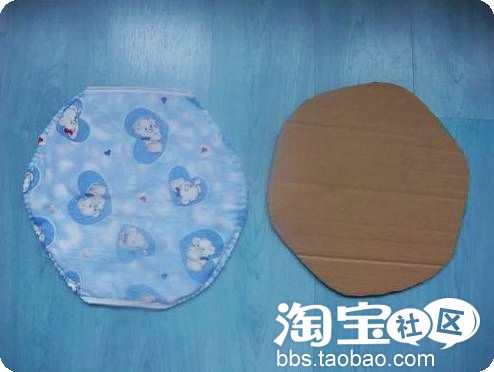 将多用儿童凳倒扣在纸盒板上裁剪一个顶的形状,然后再裁剪一块凳垫,我利用了宝宝以前的褥子,很小现在不用了。