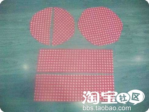 裁剪多用儿童凳套子,拿纸盒板模子裁剪一个整片,两个半片,还有凳身围片,因为我用的面料不够长,所以裁剪成两片了。注意要留1厘米缝份,底边留3厘米。两个半片最好使用弹性面料。