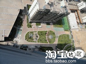 左边是楼道后窗户俯瞰下去的,右边是我家7号楼的地下自行车库入口,配套设施和环境还是相当不错的!