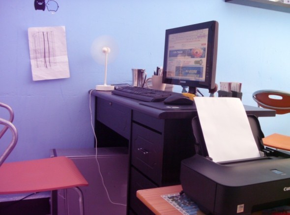后面的墙贴是自己贴的,自己店里的宝贝直接拿用来了,不单可以做展示也可以美化一些店铺。上门的网线走的不是很好,当时急着拉网了,没考虑到布线的问题了,唉,做淘宝的断一下网都是要命的呀。