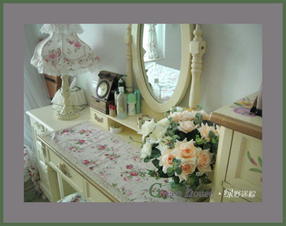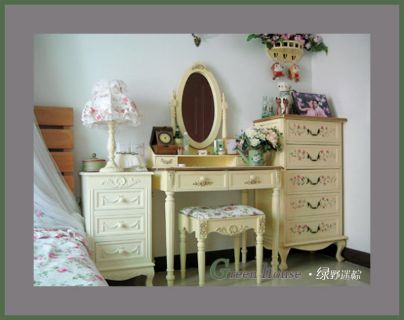上面全部都是自己店的家具哦!本来是纯白色的,我专业让厂里的师傅帮我改为米黄色,开始还担心效果不好,但出来后真的很喜欢,就是我想要的阳光田园!哈哈!