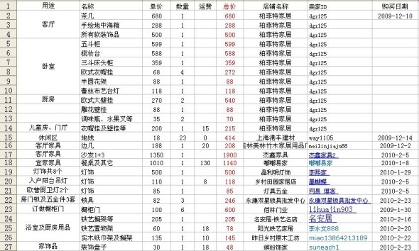 先贴网购清单,这里只能发图片,想要电子文档的请留下邮箱,我会一一会送的哦!