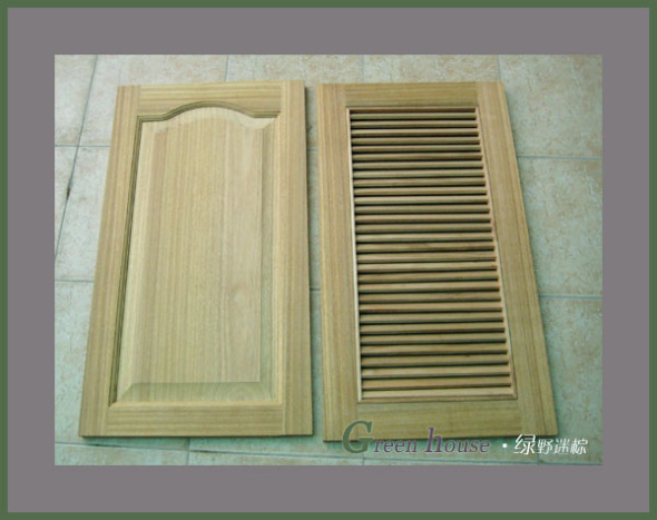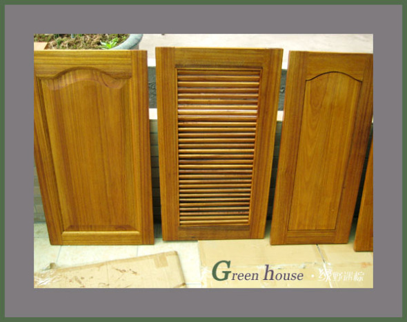 上漆前的橱柜门,清晰的木纹,我很喜欢!~一共做了6个门,其中两扇是百叶门,装在燃气灶下面,用来通风的!还有一块消毒柜上方的小木板,一共才600元包快递,挺划算的!