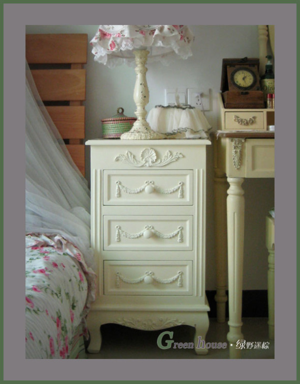 三斗柜是最新订做的,所以有点色差,比原来的颜色淡一点,不过也很好看!~收纳超好的!很多细碎的东西都全放里面了!床头柜359元:http://item.taobao.com/auction/item_detail-0db2-e54e31132faf161d15f3d4c5e76beaed.htm