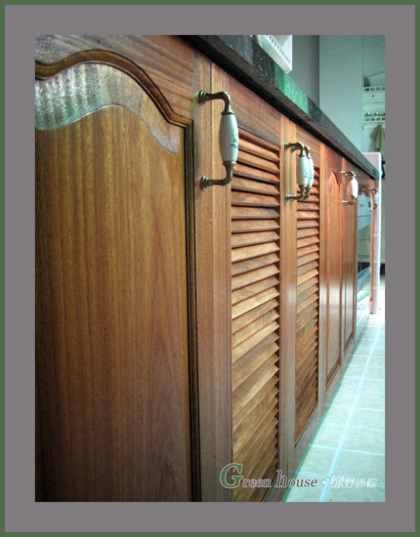 中间两扇是燃气灶下面的百叶门,因为要通风,所以专门订的百叶门,偶老爸上漆的效果也不错,呵呵!