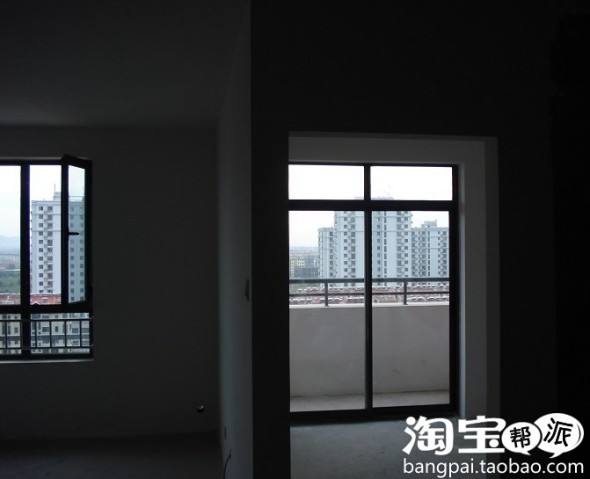 左边是客厅,右边是卧室,卧室带着大阳台(阳台真的很大哦,一梯三户,最我这个小户型阳台大,差不多四五个平那样的)。照片有点黑