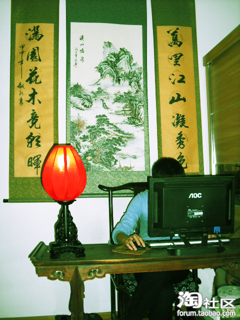 电脑旁边的灯,罗汉床和旁边的灯,这三样都是我的大爱