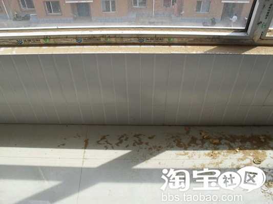 阳台砖只铺了窗台下面的一点,选了又点木纹图案的砖。