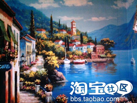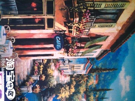 进门右边是客厅。正对大门的墙上的画是写真,图是在喷绘店的素材里找的,一大幅画花了不足200元。