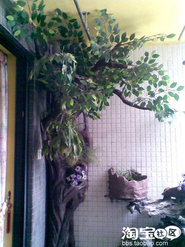 客厅和阳台间的推拉门,门外靠墙一角的雨水管被我女友的”艺术家”爸爸用水泥做成了一棵枝繁叶茂的榕树,虽然水泥是我嘿哟嘿哟搬回来的,树叶是我女友花30元在白燕街花鸟市场买的,组成树干和树枝的钢筋是我在废品回收站淘来的,但是艺术高于一切,光荣属于她爸。