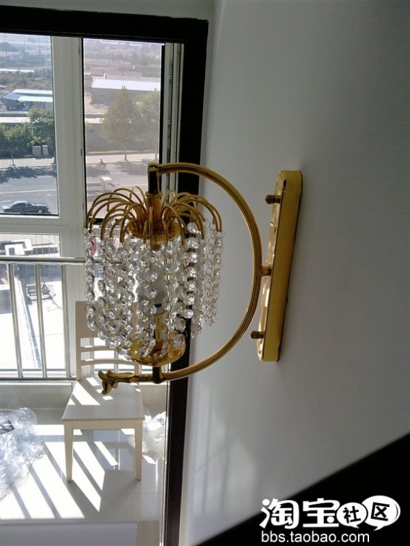 灯具选用的是一套系的吸顶灯。我本来是喜欢水晶灯的,无奈老公嫌水晶灯擦洗麻烦,这次我是尊重了老公的意见,买了吸顶灯,是玫红色的金属边,效果还不错。然后只在餐厅买了个小的水晶灯,听说家里放水晶灯能开运,呵呵。