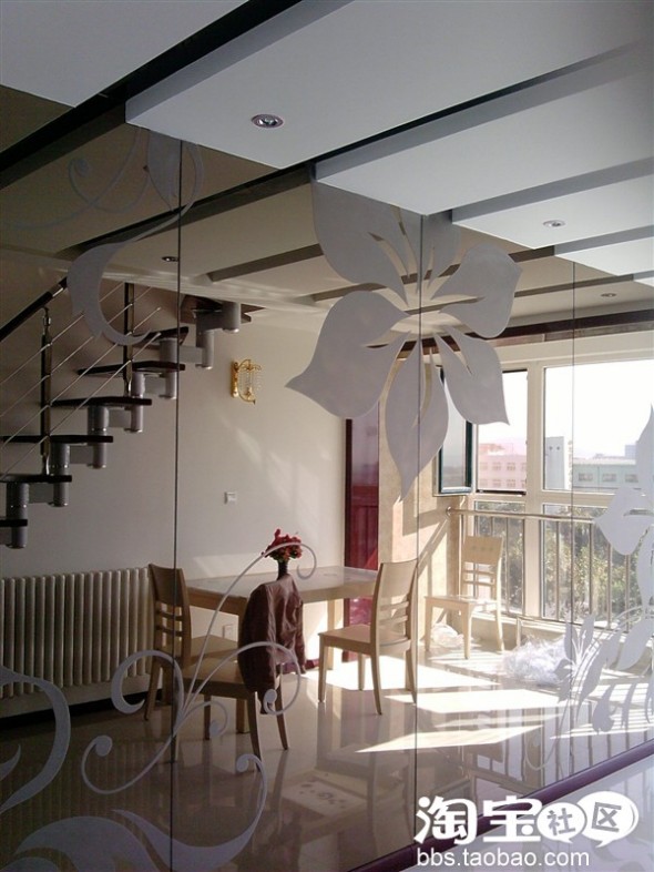 我觉得家里还有个亮点,就是餐厅的墙壁,设计师为我们设计了金镜加刻花的造型。开始挺担心出来的效果会比较土气,结果装上去以后,觉得真是挺有创意的,也衬托出餐厅面积大一些。