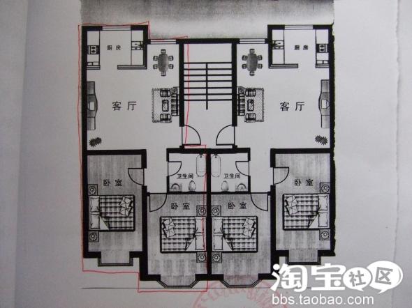 房子是多层,位于4楼,总面积79.86,南北方向,两个卧室在阳面,想要的风格是简约、欧式.下面是效果图,红色描出来的是我的房子,是西户,请大家帮忙!谢谢
