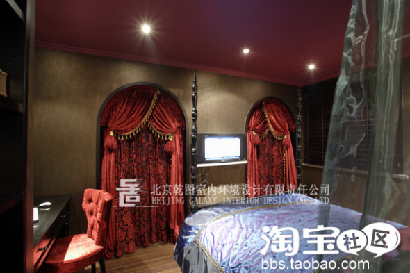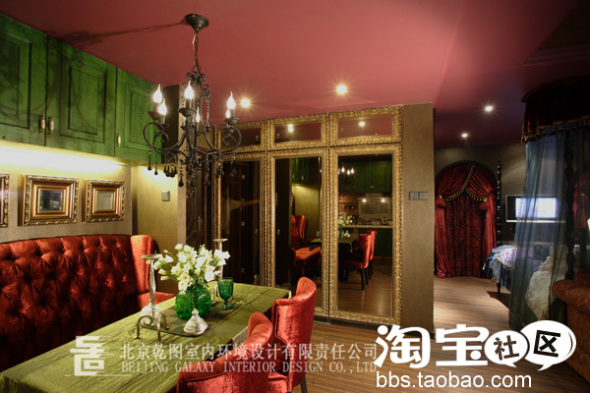 在风格方面,设计师比较偏爱色彩浓重一点的欧式元素,所以空间中传统的欧洲装饰风格处处有所体现。很多人都认为,在小空间当中不能使用浓重的色彩,因为这样会让空间显得更加窄小和压抑。但在这套设计当中,浓重的色彩并没有让空间显得窘迫,反而给人们带来了一种全新的视觉感受。