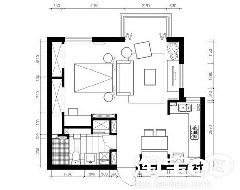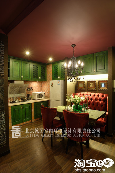 8、餐厅:餐厨合一的餐厅也延续了欧式风格,其中订做的沙发是出于充分利用空间的考虑;