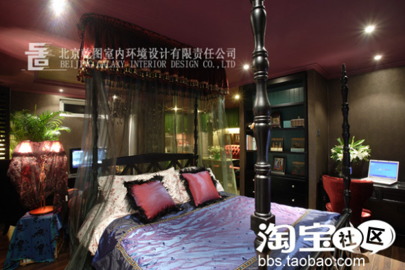 6、卧室:床就在沙发的背后,欧式四柱床在实用的同时也有很好的装饰作用;