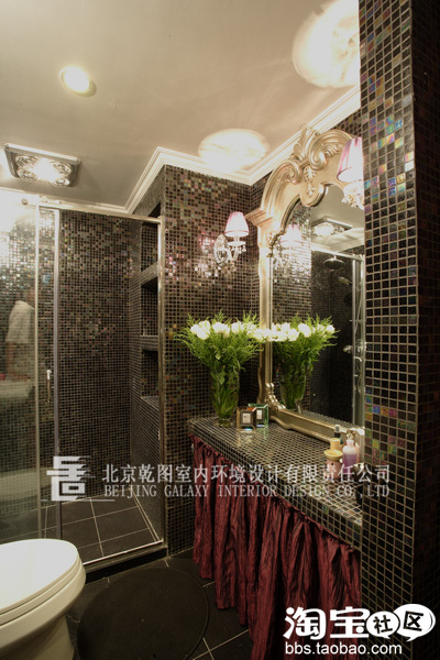 10、卫生间:深色的卫生间因为使用了有反光作用的马赛克,显得更加整洁和舒适了;