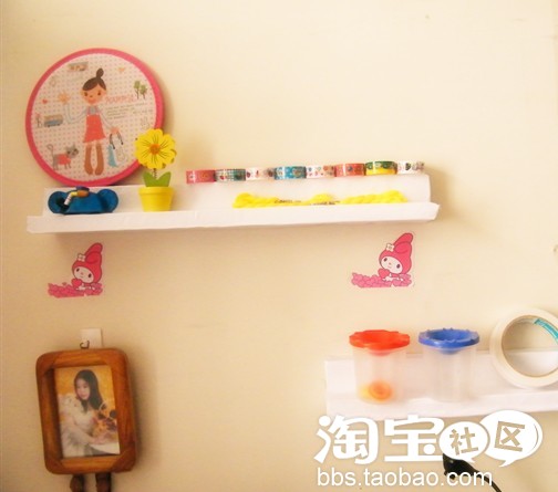 昨天DIY了两个搁板,用泡沫和壁纸做的...