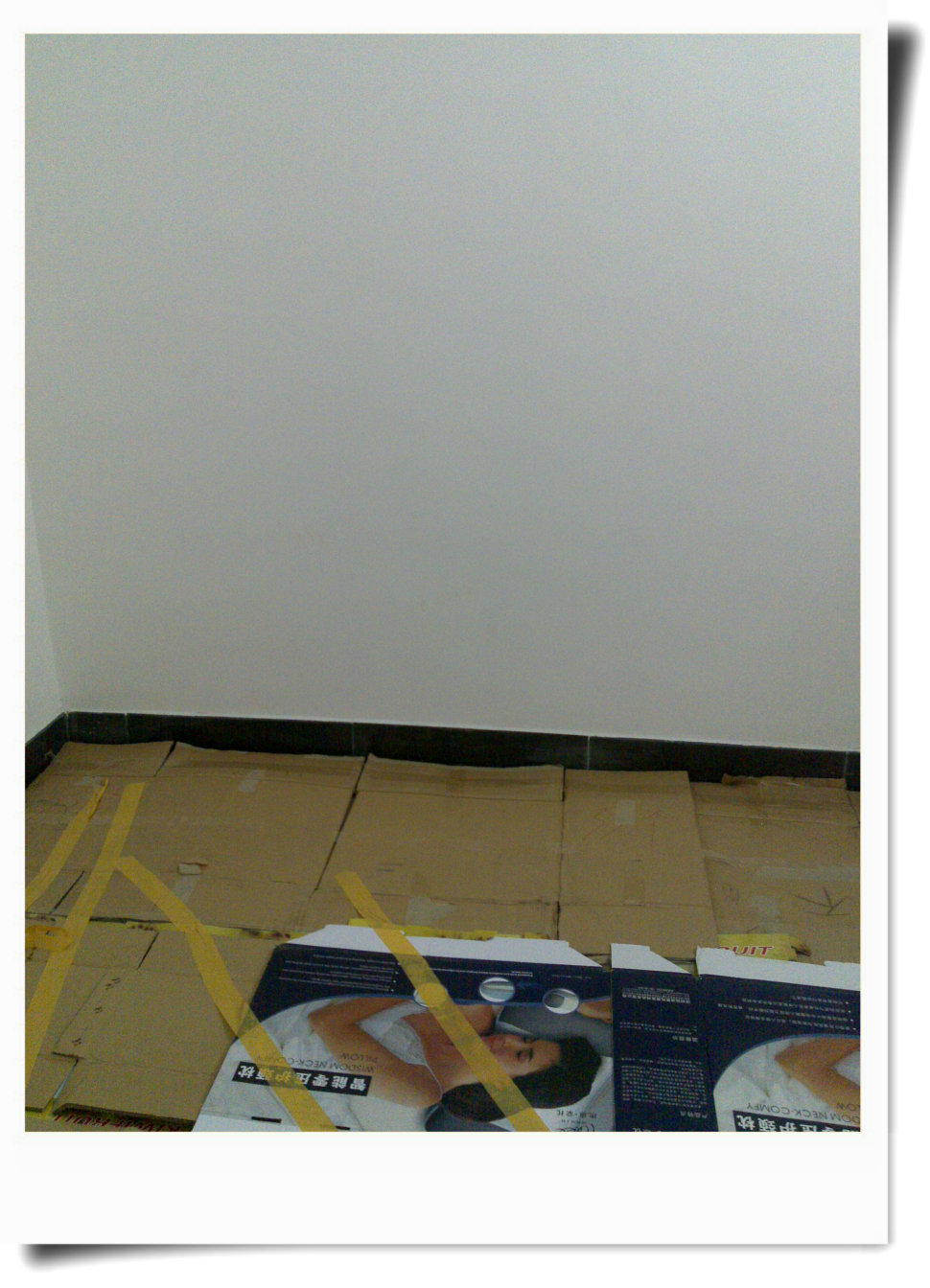为了保证装修不弄花这个新地板,我们铺了一些纸皮,这里用了差不多60斤奇异果箱子。