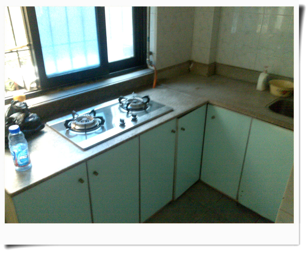 这种橱柜容易清洗整个格局是厨房进洗手间,而且洗手间前面无缘无故又多了一块地方不知道用来干嘛的(估计原来要放洗衣机,但是我们现在准备将洗衣机放在阳台),于是墙面全部打掉,从新弄一面新的薄墙!