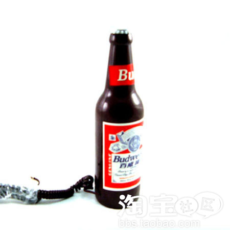 我老公第一眼看到的时候问的话是,老婆,怎么允许我喝酒了啊?(最近本人威逼利诱强行要求他戒酒)。差点没把我笑背过气去。哈哈,这是么,是电话机。相当创意吧?27.91元。我问店家干嘛连1分钱也要收,他说是成本中有那么1分钱。