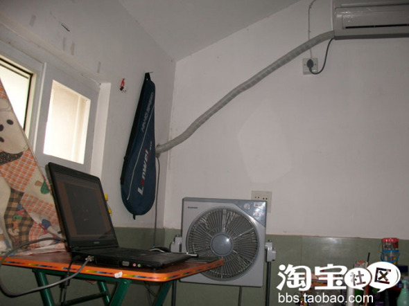 这里已经装了空调,风扇也把套着的袋子取掉,开始工作了。