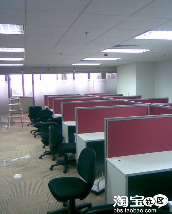 我们进去看看办公地方的家私吧.办公室都是要有一定规范的,所以看上去都是一排一排...