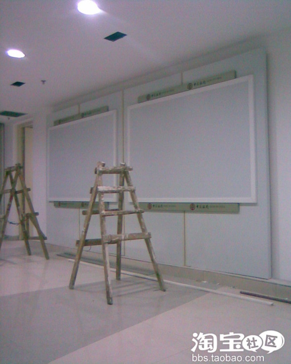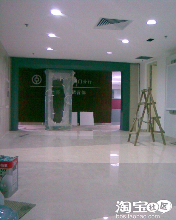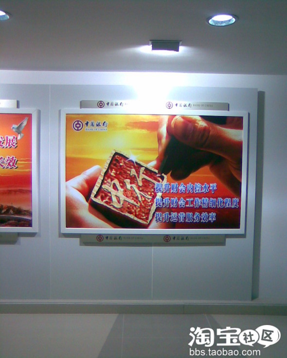 门口的两大招牌正对着电梯门口,上来的人一看就知道是中国银行.呵呵 广告还没贴上呢.不要急我们慢慢往下看.