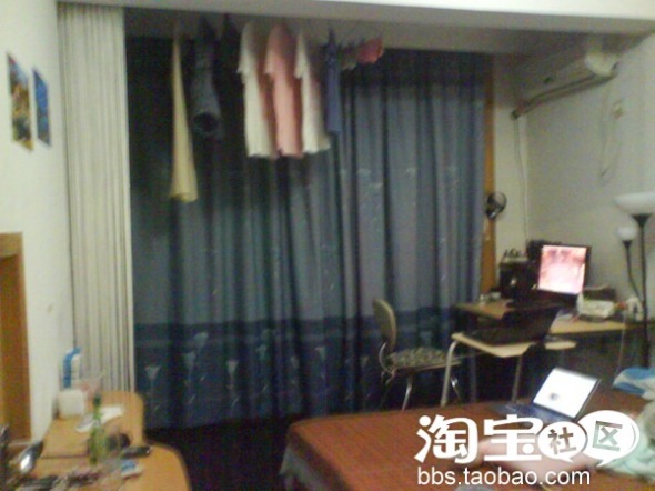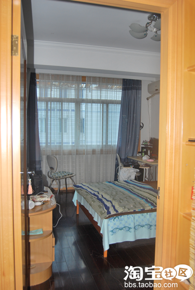 从卧室门口看过去的样子,好乱,窗帘相当的不舒服,纱帘还是女友去年自己配的,在淘寶購入