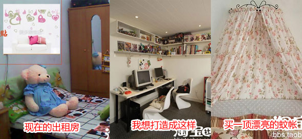 第二步:在淘宝居家装修论坛贴出装修方案,请参照样贴:【我爱我家 租房装修】+我要装出美美卧室