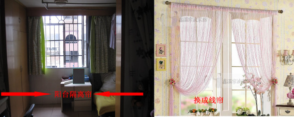 房间和阳台中间换上线窗帘,让线帘与和房间外的光线或灯光的相互辉映,它那大胆的简化和适当的透明度,以一种大面积敞开的方式展示时,能够最大限度的显示出优雅格调...