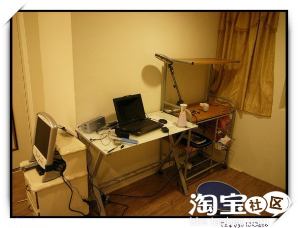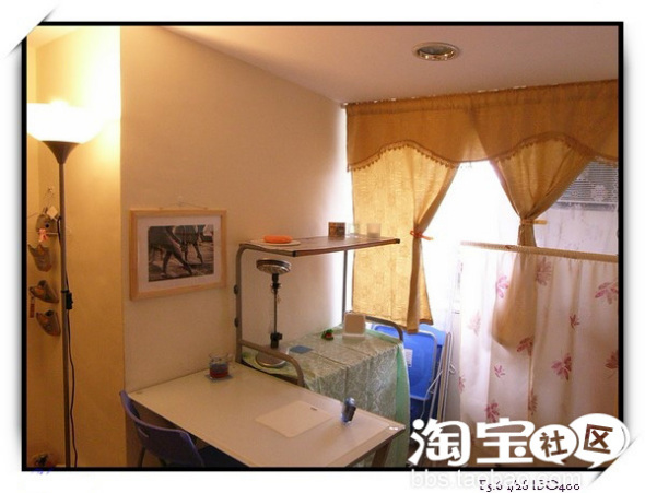 後面-原本的桌子底下放置雜物書籍,上面用輕簾裝飾住遮住雜物...