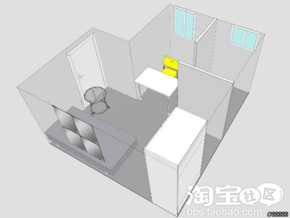 (熱水器跟凸起的地板就因為功能沒有所以沒有畫出來..請參考2D平面圖)