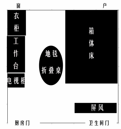 找了很多样品房,真的找不到适合我的,没有集会客,吃饭,睡觉,工作为一体的样品房图片供参考,所以我这里就贴一张自己画的格局图。