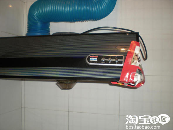 负伤的抽油烟机,被我脑袋撞到的,我也因此负伤了。真是两败俱伤啊